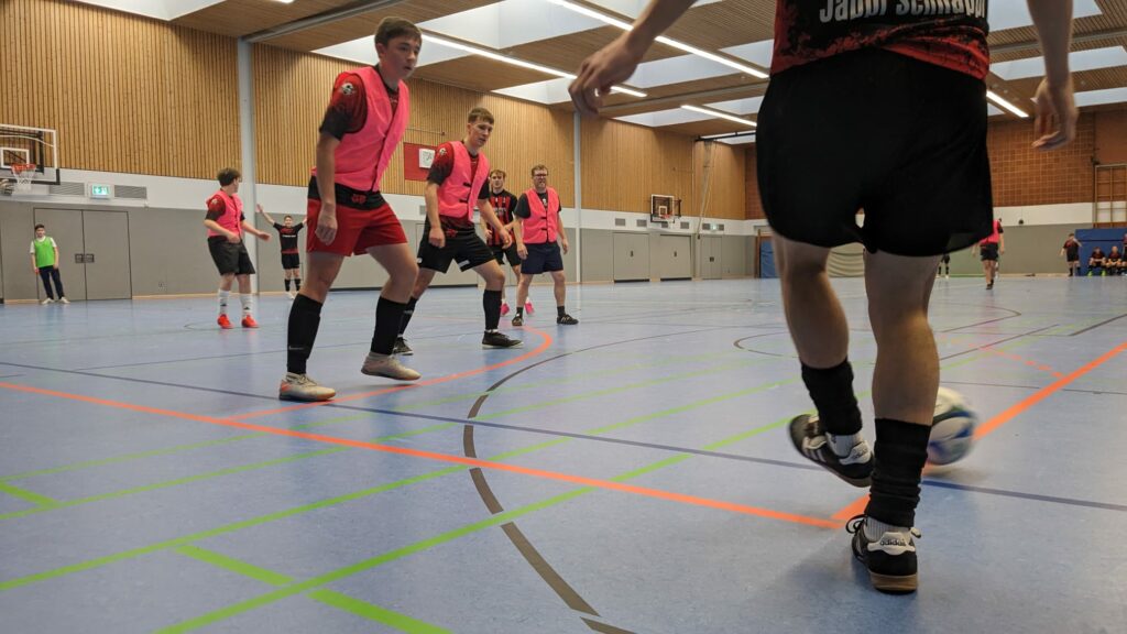 Ein Highlight dieses Derbys war die Q3/Lehrer-Mannschaft. Alte Derby Stars vereint mit Lehrer, was gibt es Besseres? Denn unsere Lehrer (Herr Schwerin, Herr Hehn, Herr Grundmann und Herr Clasen) haben gekämpft und kamen sogar in die Endrunde gegen die Q1. Die Einsicht des Kapitäns vor dem Derby war, dass das Team motiviert und aufgeregt war, aber auch Bock hat und bereit ist zu kämpfen. Er sagte voraus das die Q2 spielfähig stärker ist, jedoch sei die 10. Klasse energiereicher. Auch wenn die Q2 natürlich schon letztes Jahr gespielt haben, kamen sie leider nicht in die letzte Runde. Doch gekämpft haben alle Mannschaften.